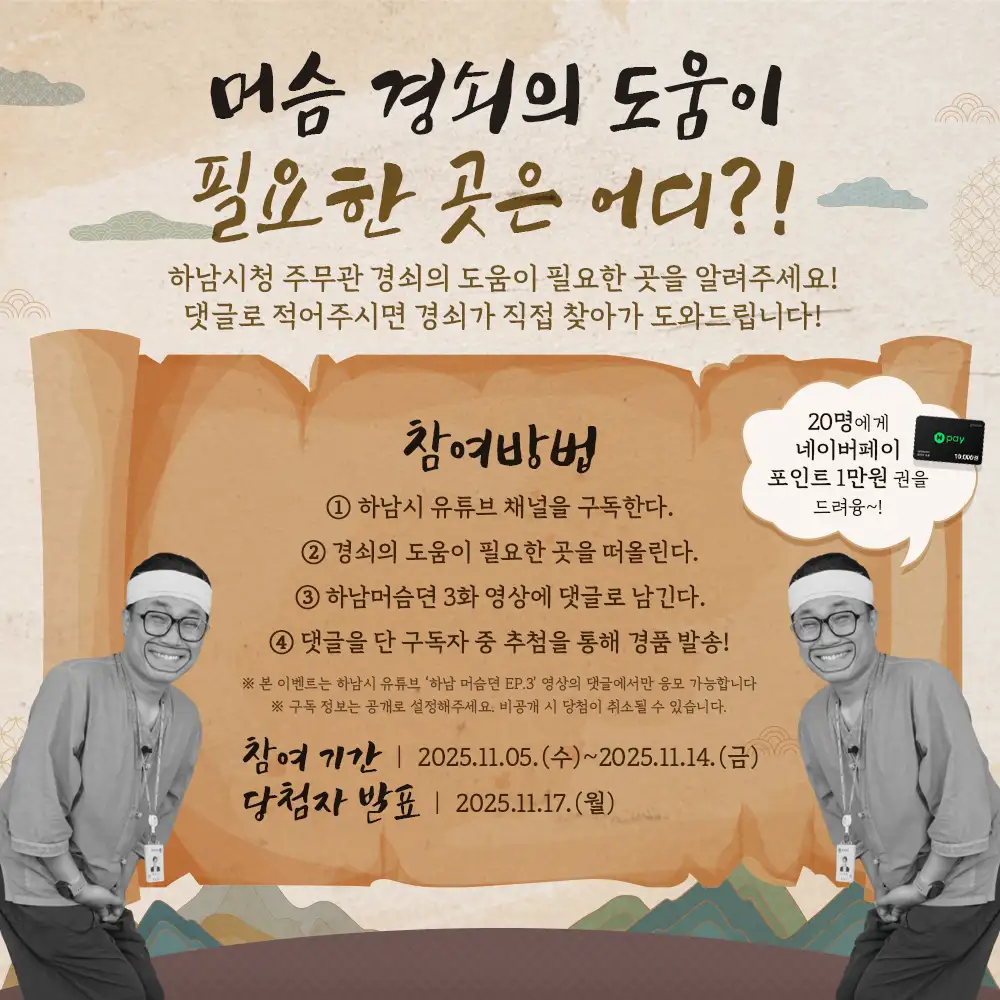 ※ 본 이벤트는 하남시 유튜브 ‘하남 머슴뎐 EP.3’ 영상의 댓글에서만 응모 가능합니다.