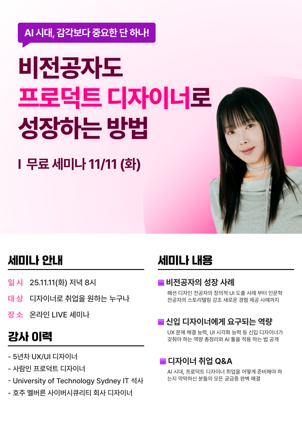 [무료 특강] 비전공자도 신입 프로덕트 디자이너로 취업하는 방법!