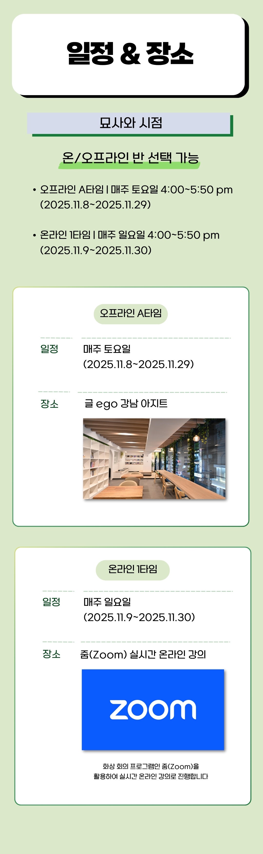 또한 실습 세션신춘문예 작가님의 1:1 피드백을 통해 소설가로서의 첫 작품을 내어볼 수 있도록 준비했습니다.