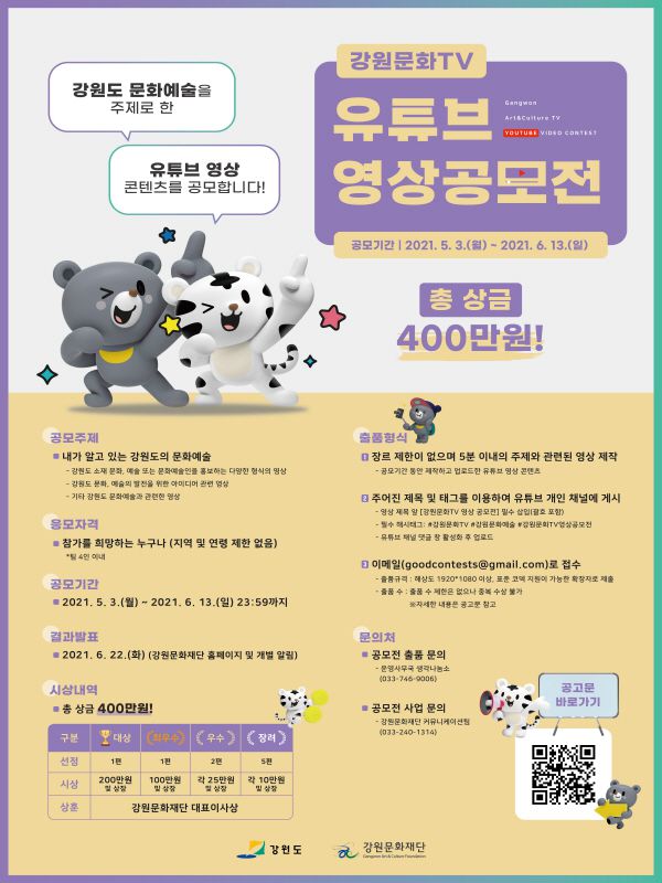 ○ 공 모 명 : 강원문화TV 유튜브 영상공모전