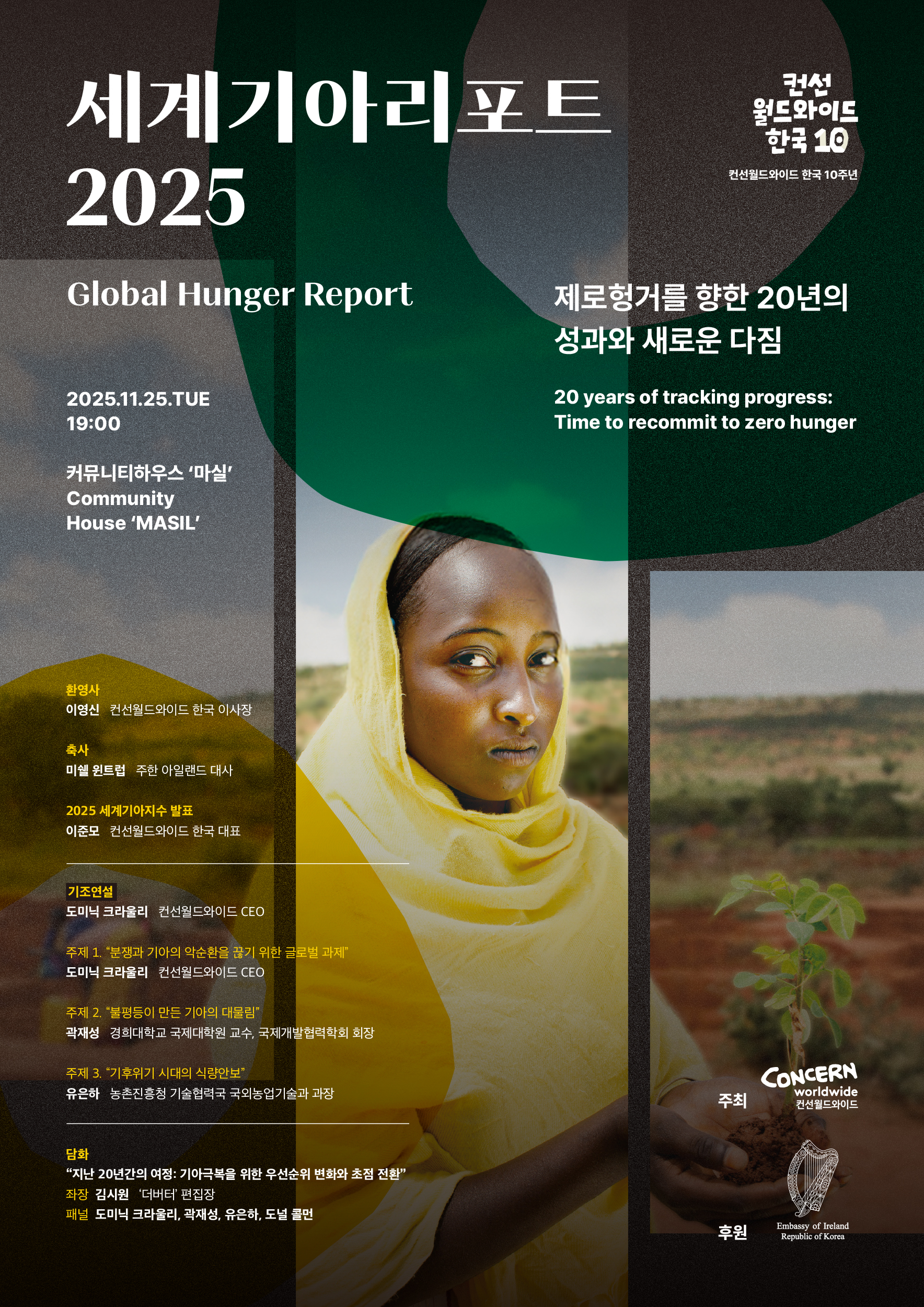 ‘2025 세계기아리포트’는 기아 종식을 향한 지난 여정을 되돌아보며 미래 세대를 위한 국제사회의 비전과 실천을 함께 모색하는 자리를 마련하고자 합니다. 기아와 빈곤이 없는 세상을 향한 변화의 여정에 함께할 차세대 리더 여러분을 초대합니다.