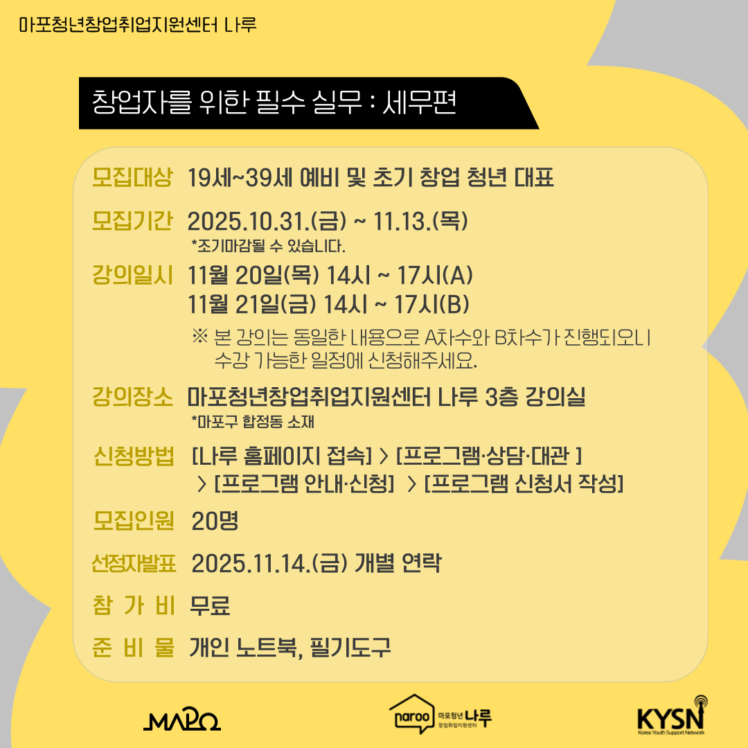 안녕하세요, 마포청년창업취업지원센터 나루입니다!