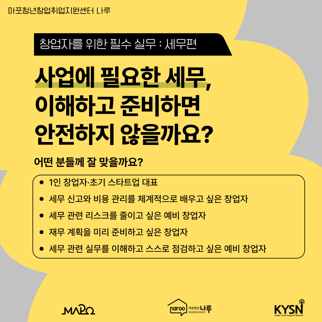 ☑ 세무 관련 리스크를 줄이고 싶은 예비 창업자