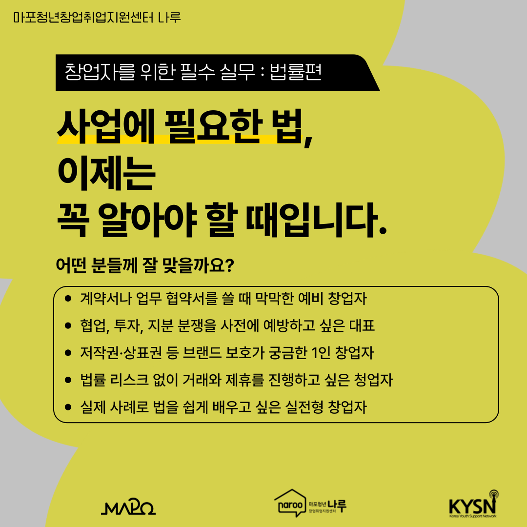 사업을 시작하면 아이디어만큼 중요한 게 ‘법’입인데요!