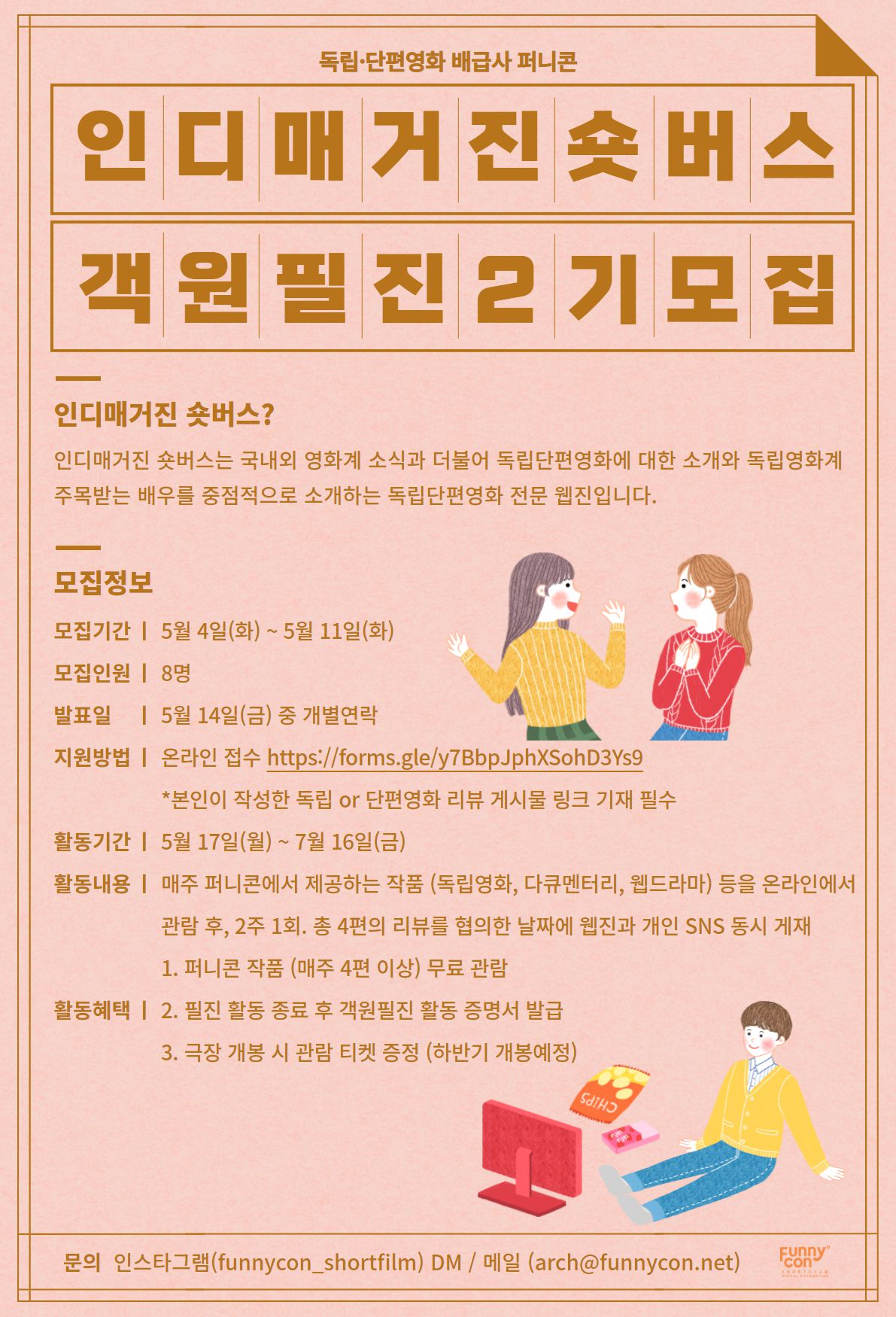 - 매주 퍼니콘에서 제공하는 작품 (독립영화, 다큐멘터리, 웹드라마 등)을 온라인에서 관람 후,