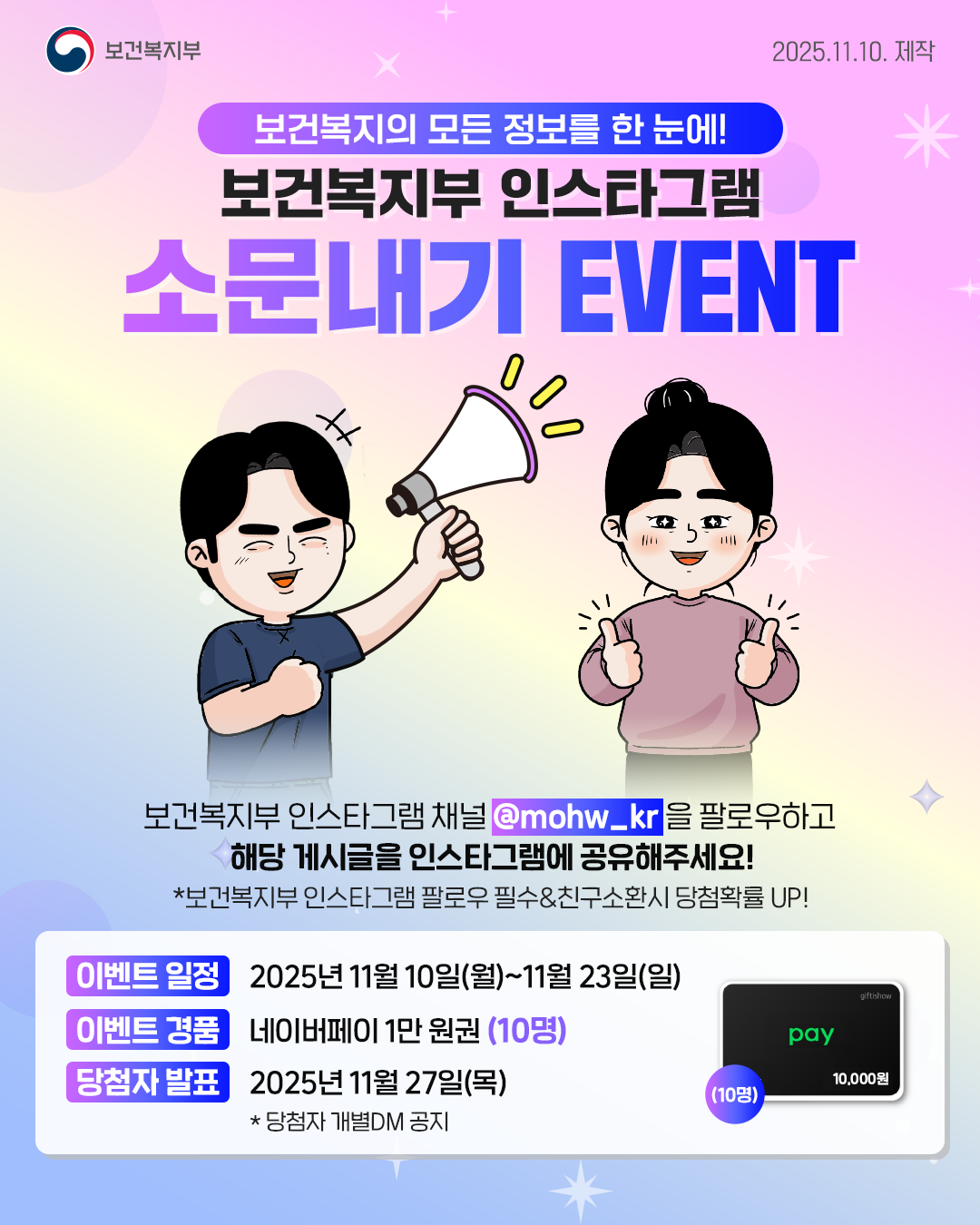 보건복지부 인스타그램 채널 @mohw_kr을 팔로우하고