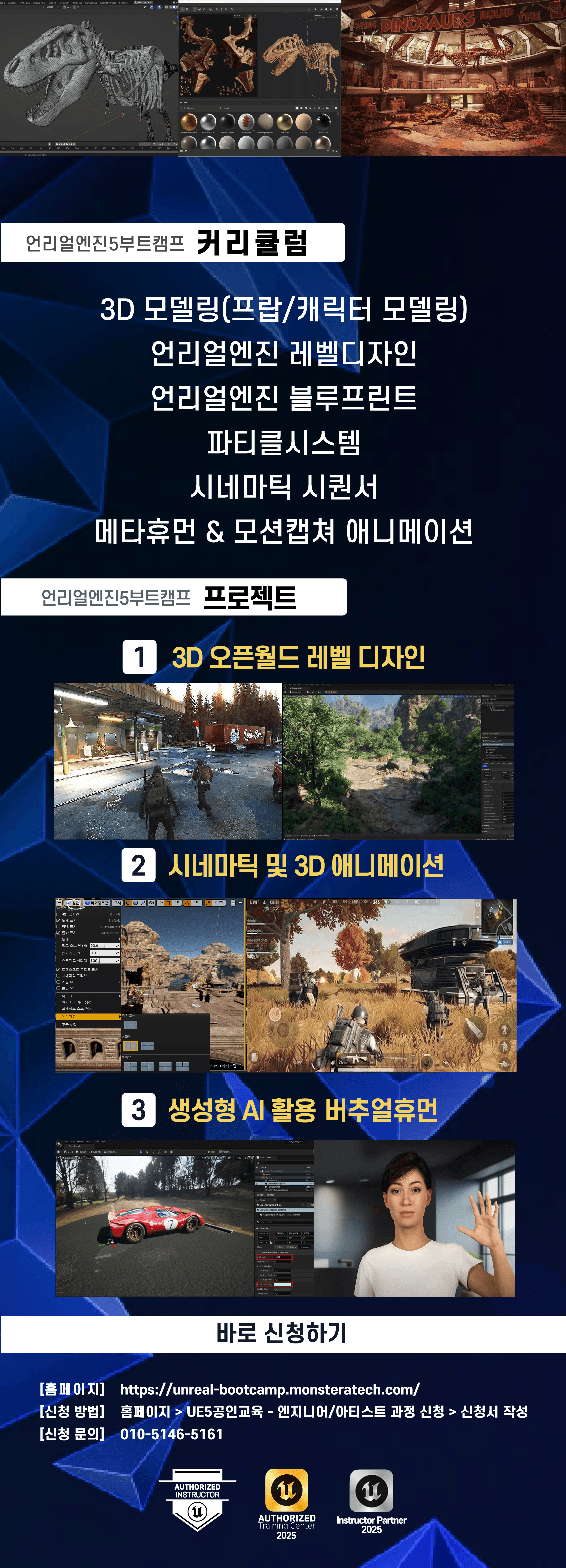 👉 언리얼 엔진을 활용한 실시간 XR 콘텐츠 제작 + 디지털 콘텐츠 시스템 구축 과정으로,