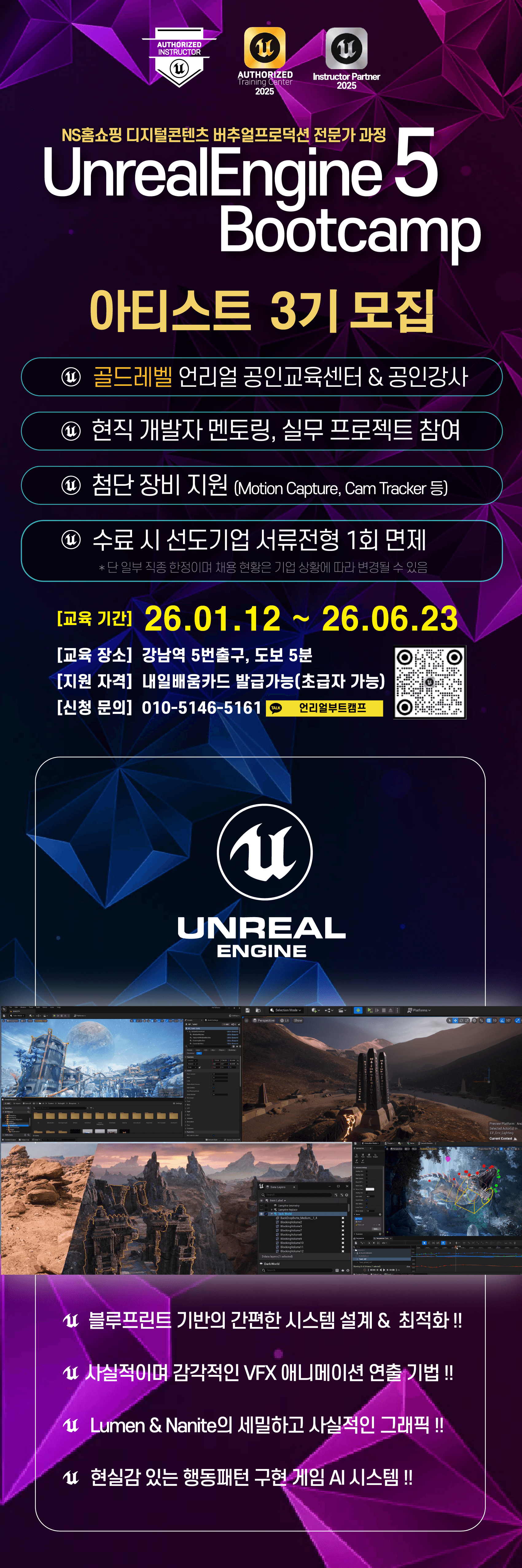 ✅ 국내 최고 수준의 언리얼 엔진 공인 강사진 & 실무 멘토링 제공!