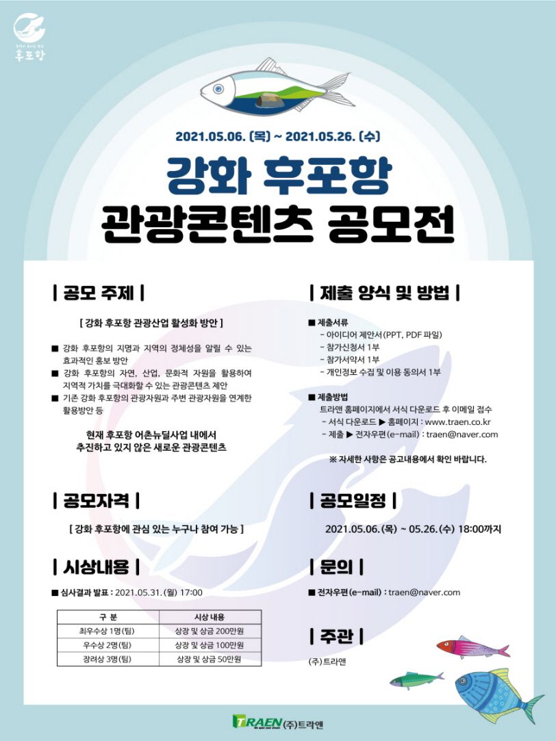 이번 공모전을 통해 코로나 19로 인해 침체 된‘강화 후포항’의 관광산업을 활성화하기 위한 홍보자원으로 활용하고자 하오니