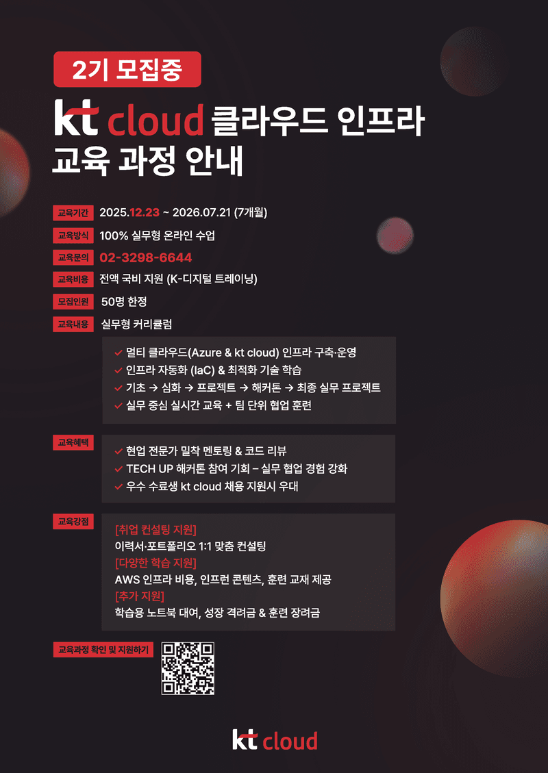 - 교육기간 : 25년 12월 23일 ~ 26년 07월 21일 [2기]