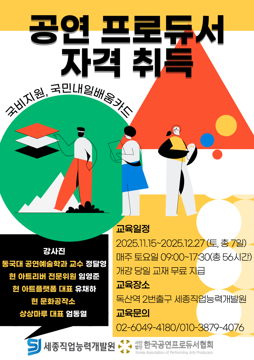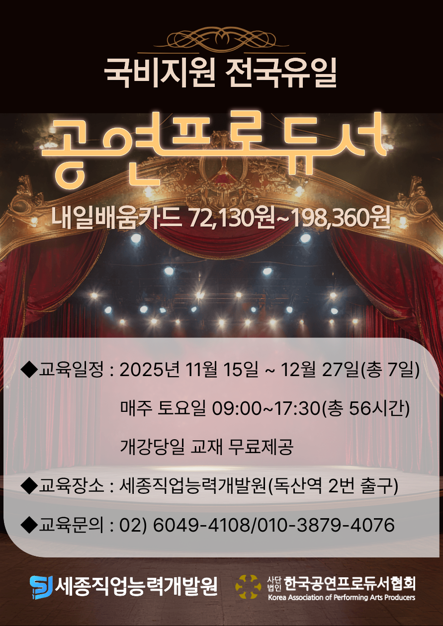 ◎ [세종직업능력개발원] 전국최초 한국공연프로듀서 자격증 과정 국비지원 개강!