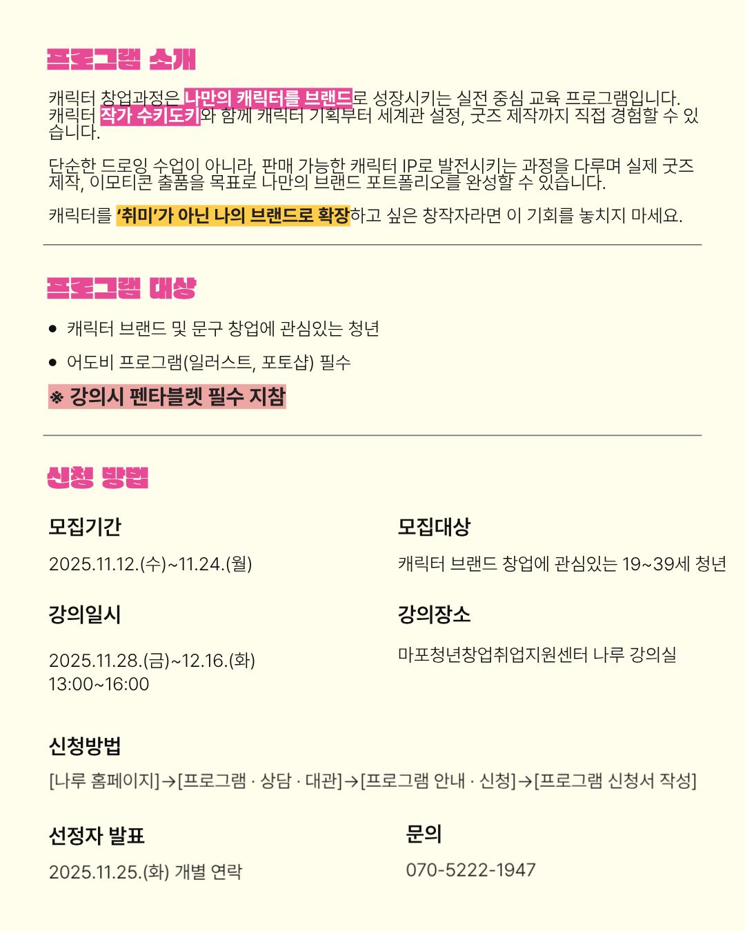 캐릭터를 ‘취미’가 아닌 나의 브랜드로 확장하고 싶은 창작자라면 이 기회를 놓치지 마세요!