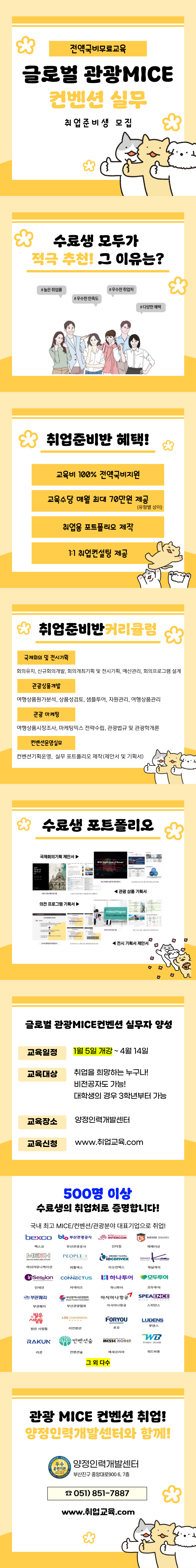🚨이제는, 관광·MICE컨벤션 전문가로 양정인력개발센터에서 시작하세요!