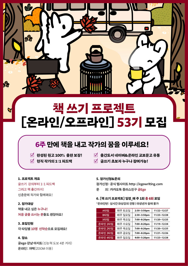▷ 시집 출판 프로젝트 : https://cafe.naver.com/egowriting/21430