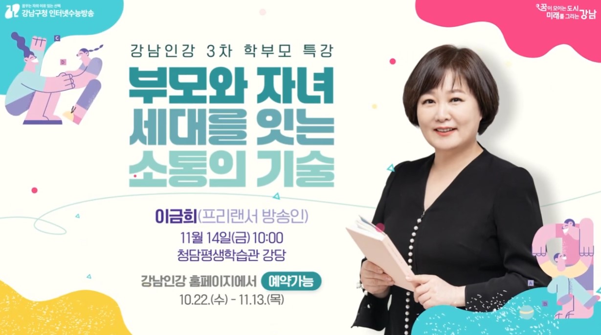 ‘부모와 자녀 세대를 잇는 소통의 기술’을 주제로 강연이 진행됩니다.