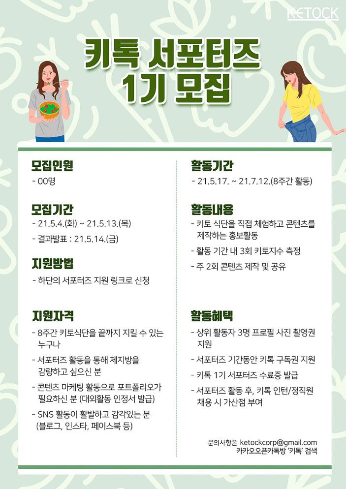 - 서포터즈 활동 후, 키톡 인턴/정직원 채용시 가산점 부여