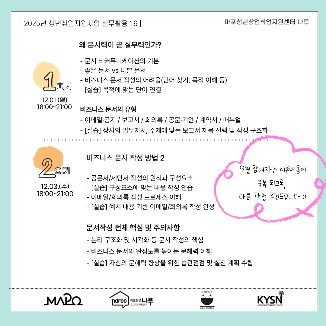 지난 9월 진행된 문서특강 강의에 대한 만족도가 높아, 이번에도 재진행하게 되었습니다!
