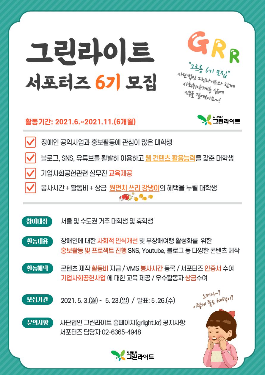 그린라이트 서포터즈 6기 그르릉 모집