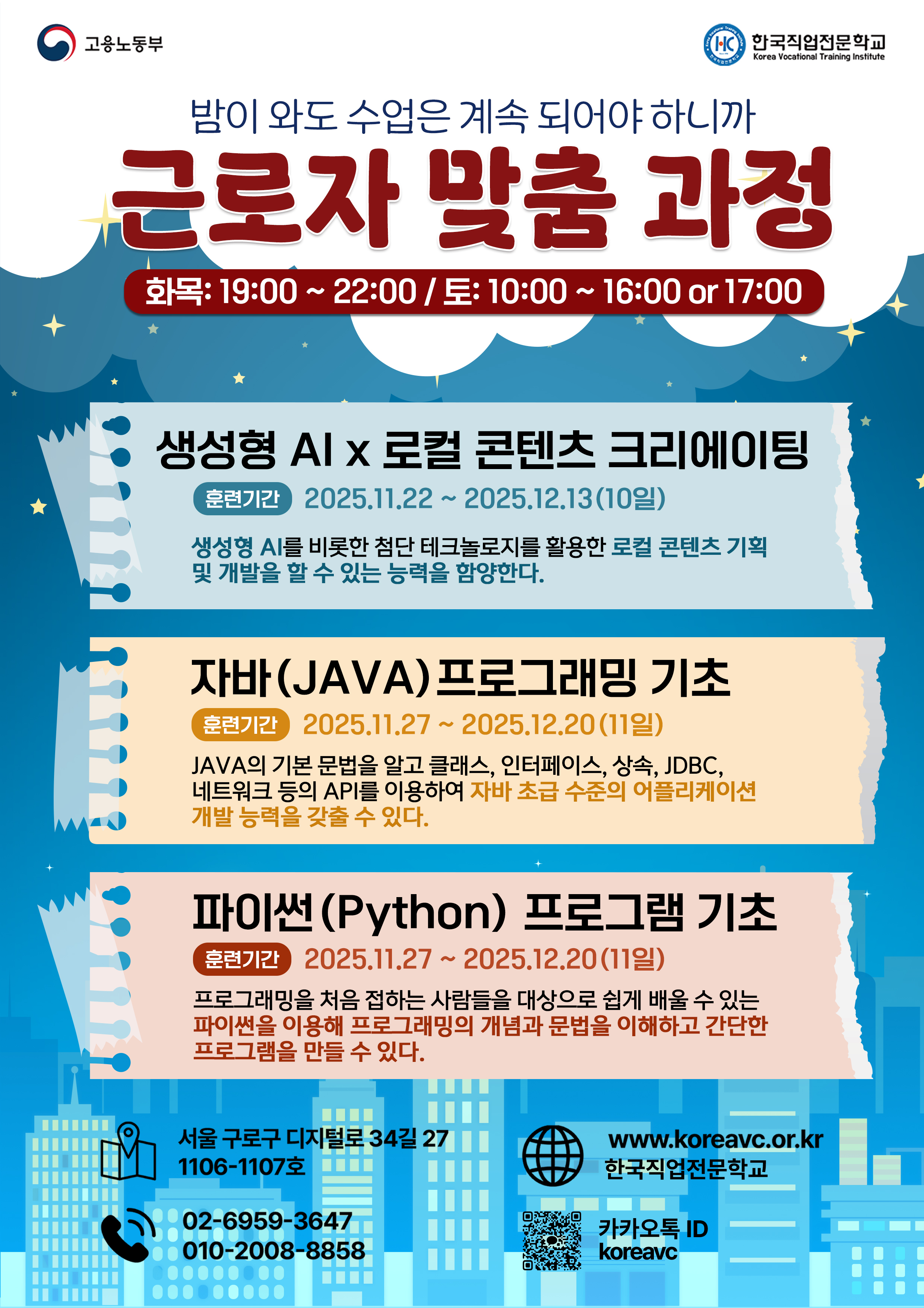 바쁜 여러분을 위해 50%의 주말 대면 교육은 서울 한국직업전문학교에서 진행합니다.