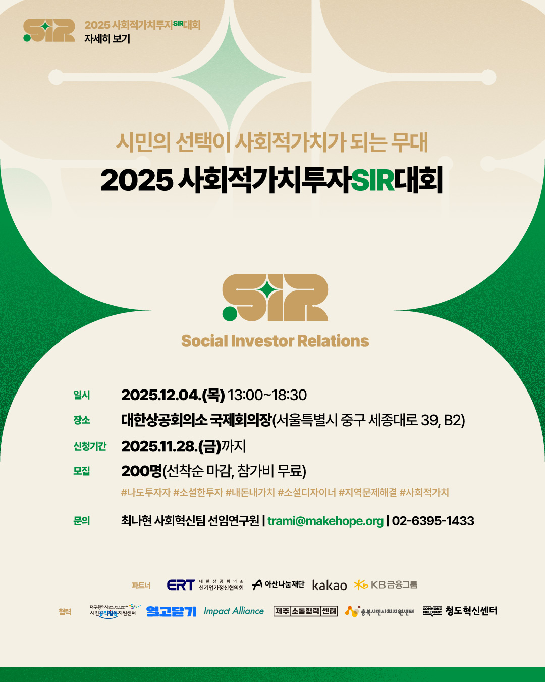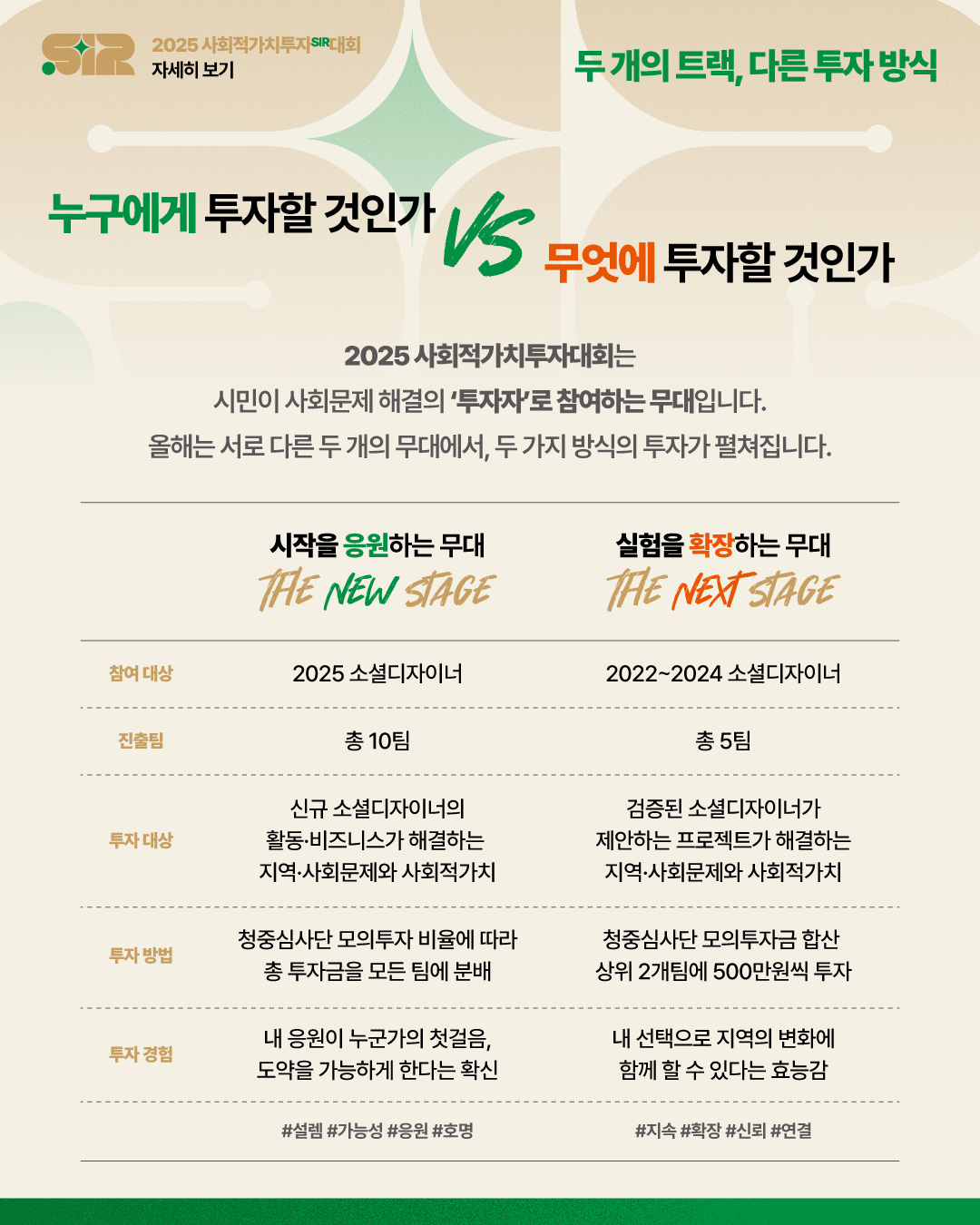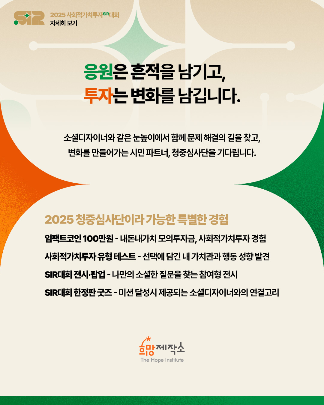 ‘2025 사회적가치투자 SIR대회’는 시민이 사회문제 해결의 투자자로 나서는 무대입니다.