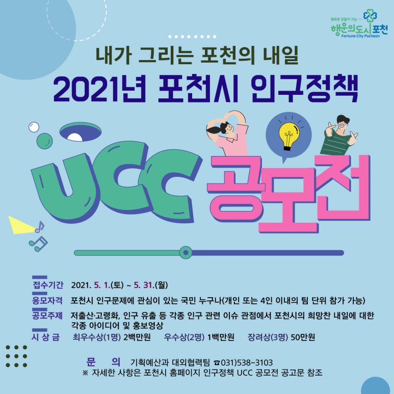 ❍ 자세한 사항: 포천시 홈페이지 인구정책 UCC 공모전 공고문 참조