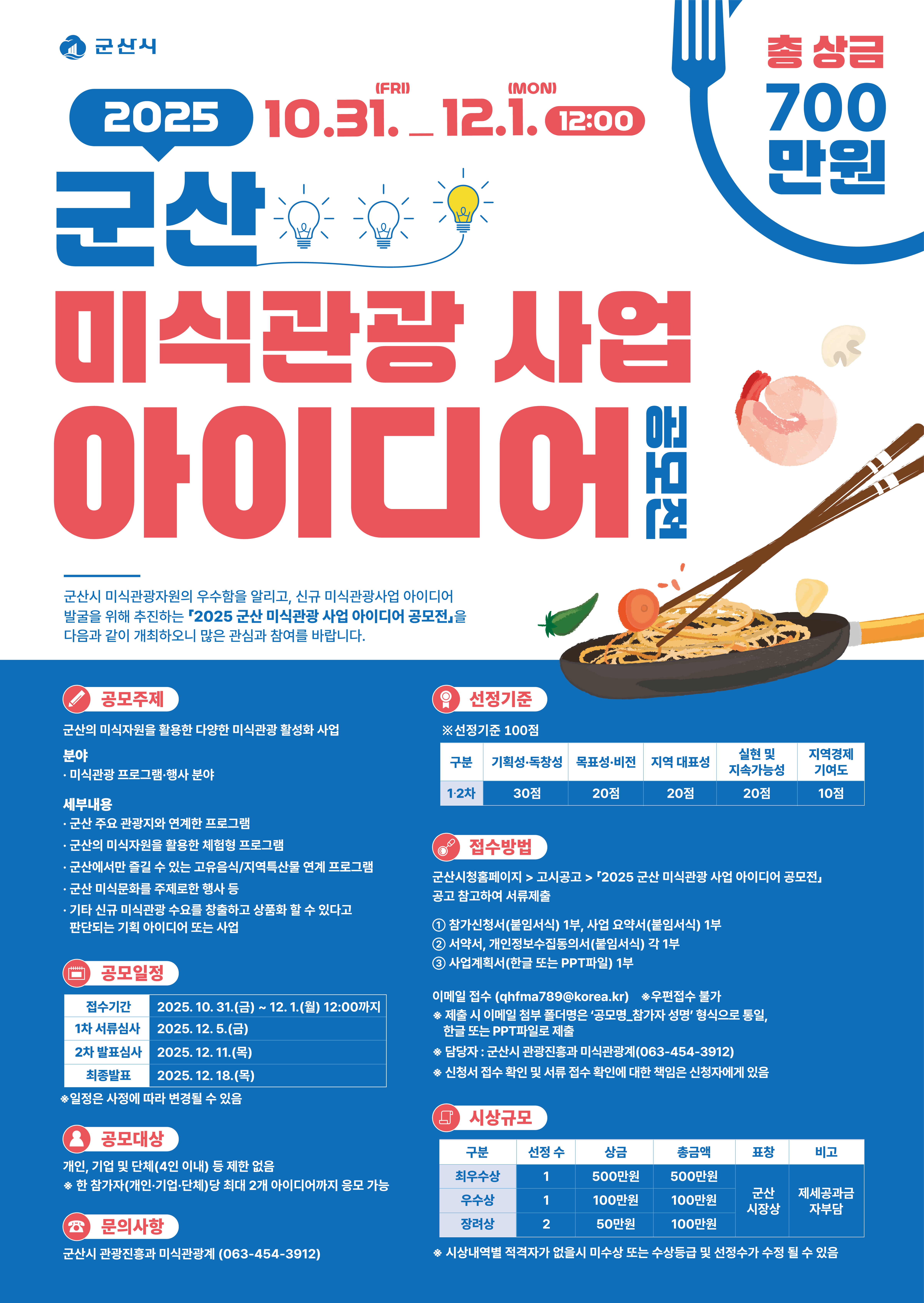 ■ 문의 : 군산시 관광진흥과 미식관광계 063-454-3912