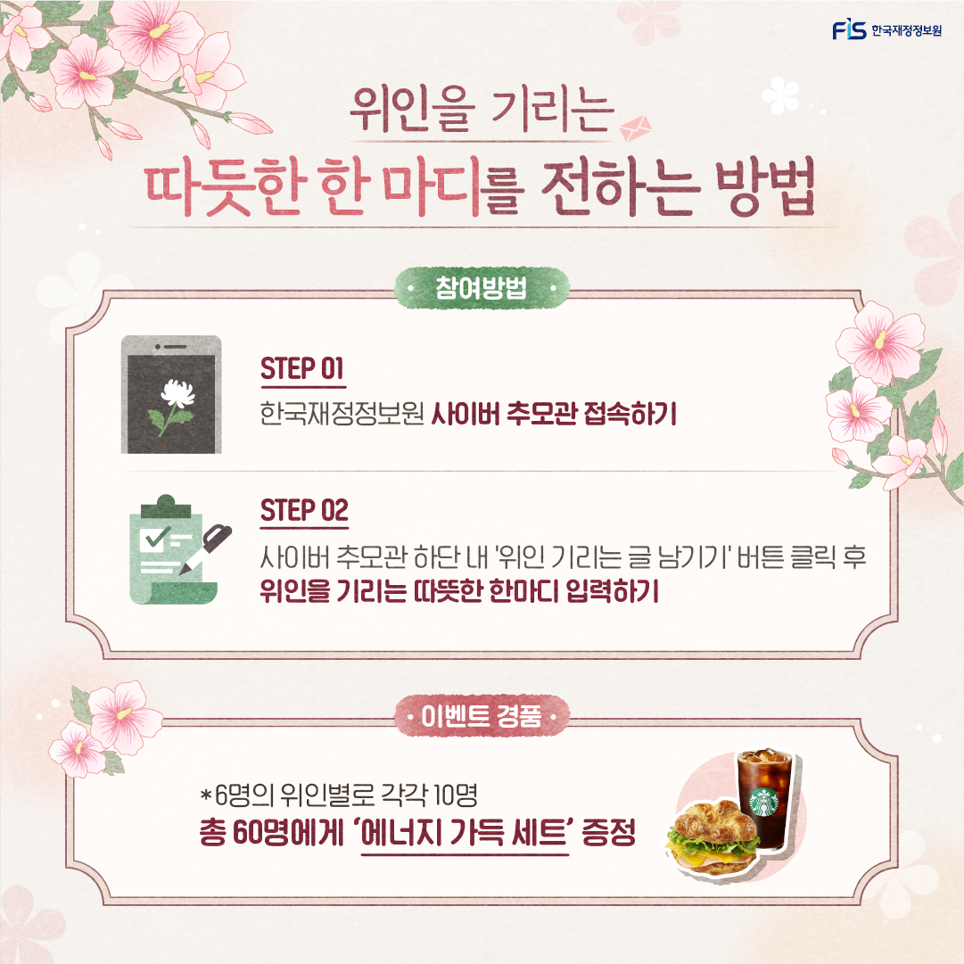 - 스타벅스 에너지 가득 한끼 세트 (총 60명, 위인 추모관별 10명)