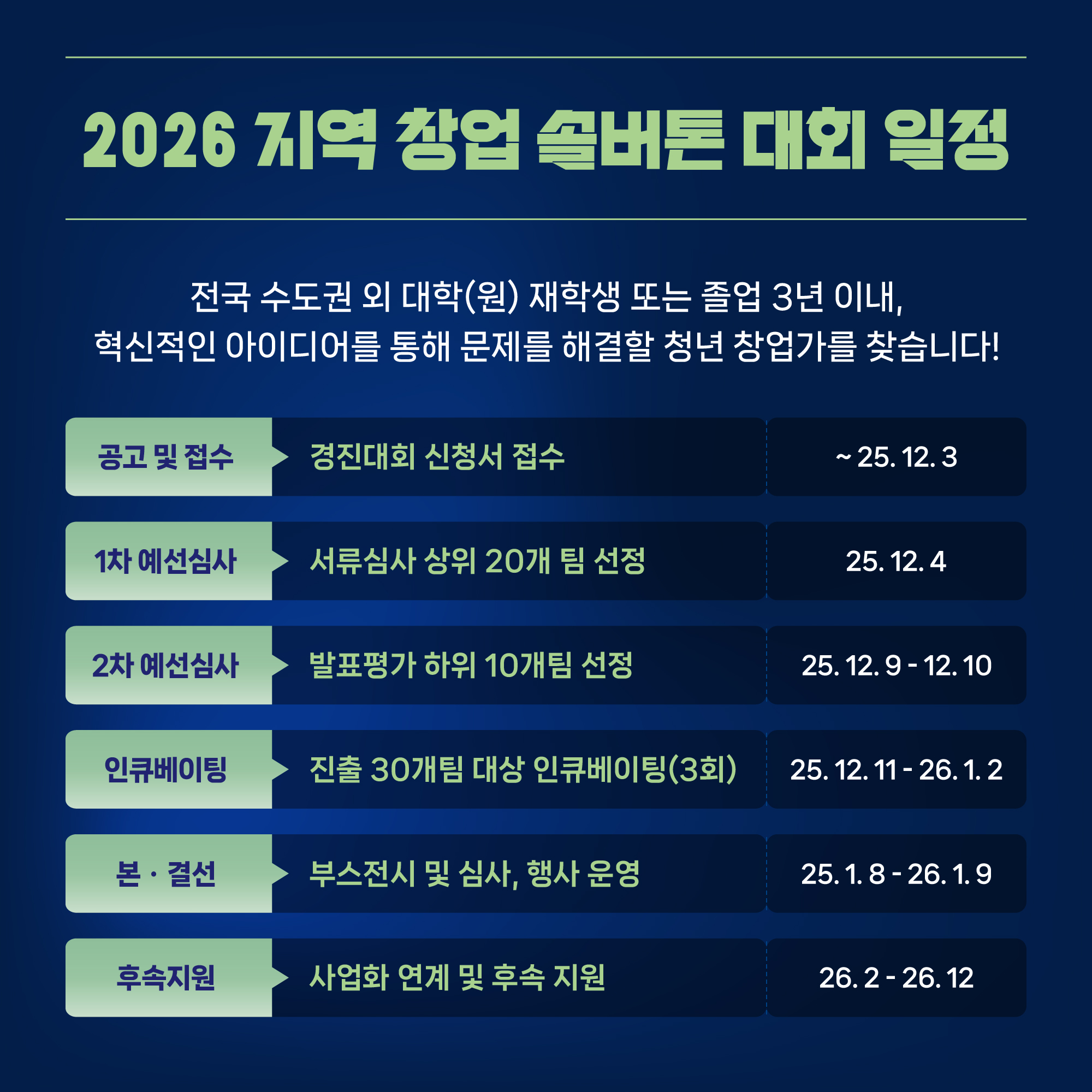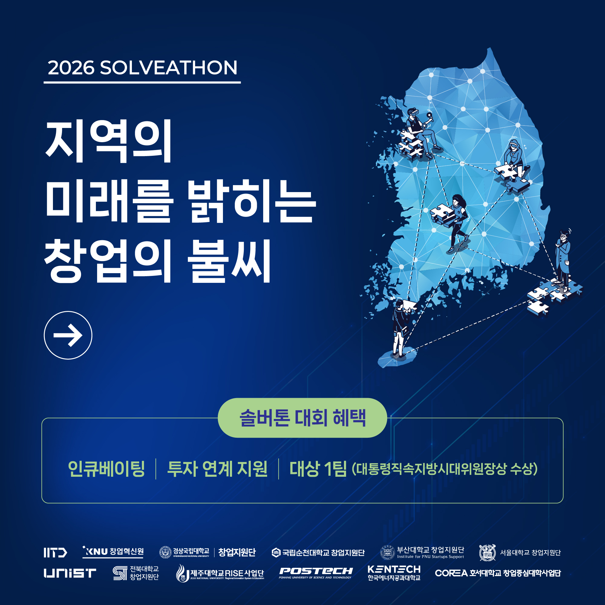 『2026 지역 창업 솔버톤 대회』를 통하여 창업의 불씨를 지피세요!