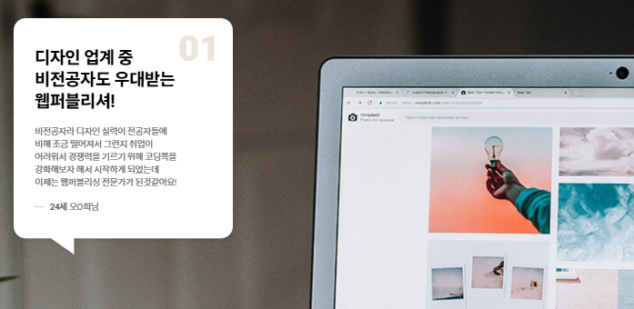 포트폴리오 설계부터 취업 연계까지 1:1로 도와드립니다.