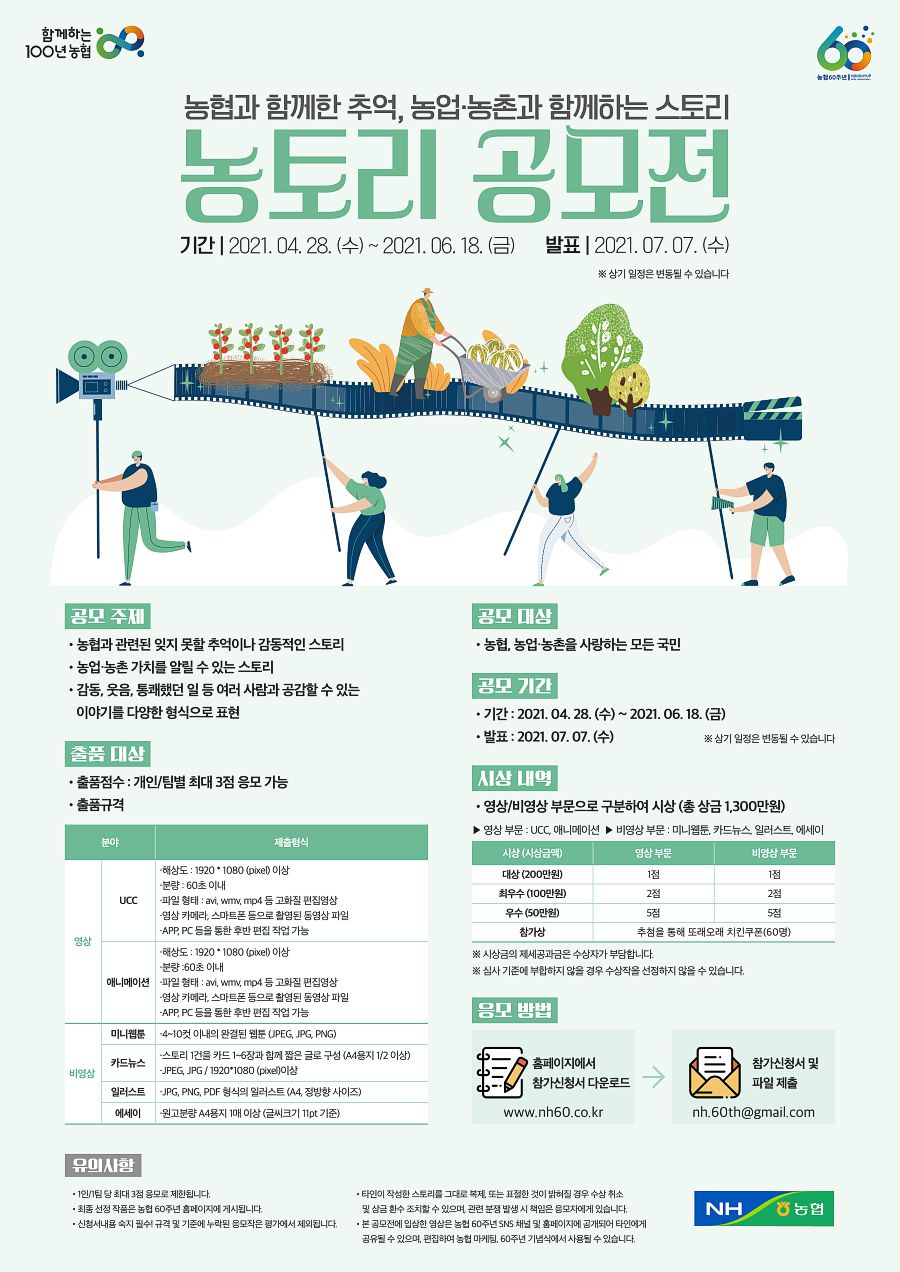 이번에 농협 60주년에서 준비한 건 바로 여러분들의 이쁘고 재미있는 추억을 다시 회상해보는 스토리 공모전 입니다!