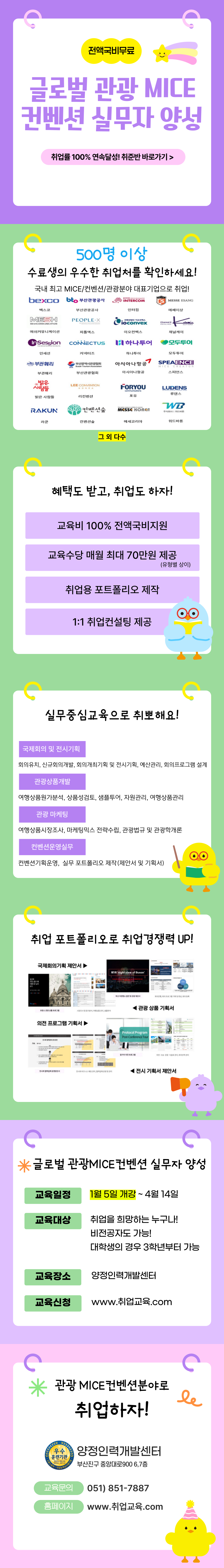 🚨이제는, 관광·MICE컨벤션 전문가로 양정인력개발센터에서 시작하세요!