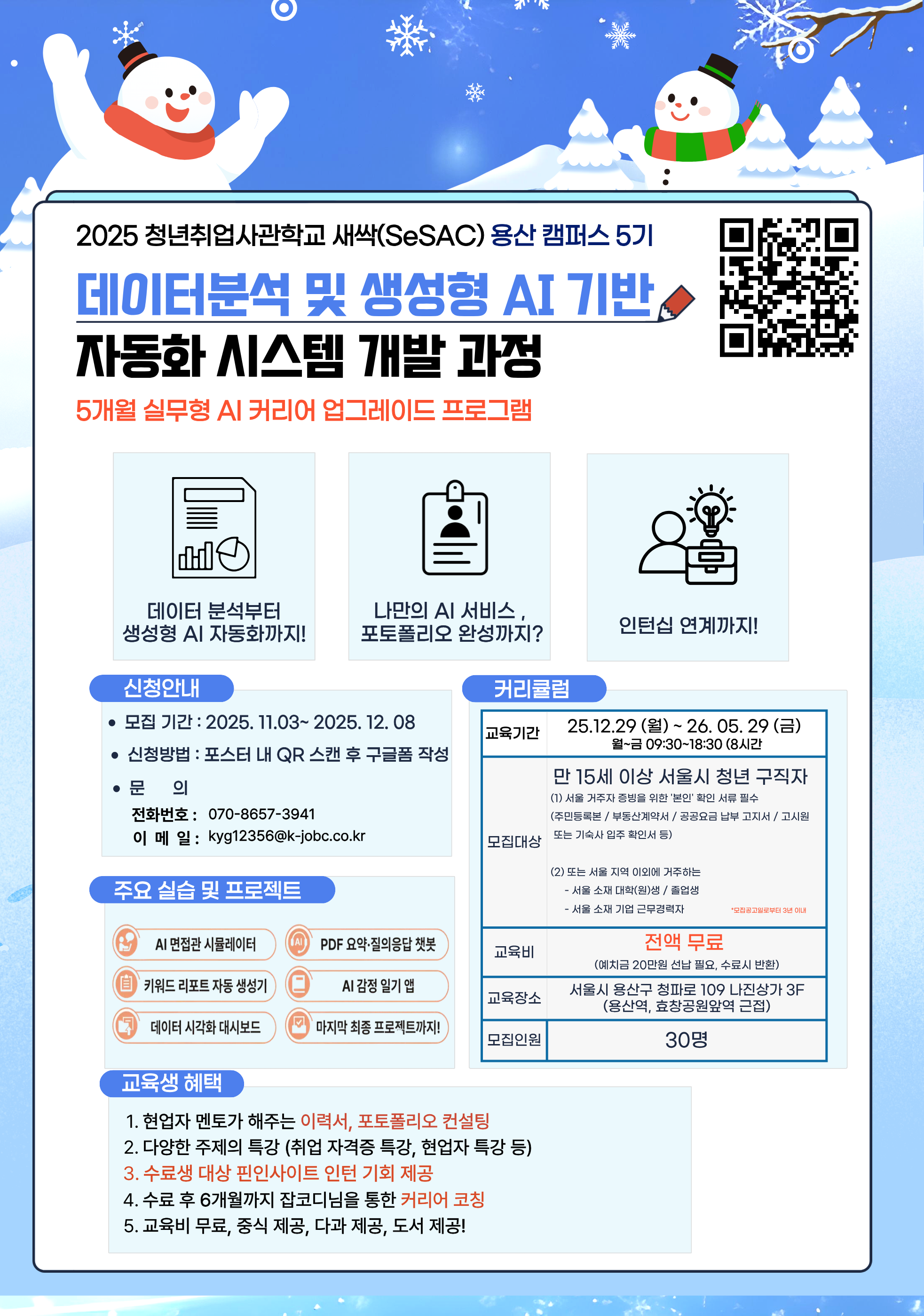 - 모집 기간 : 2025.11.03.(월) ~ 2025.12.08 (월)