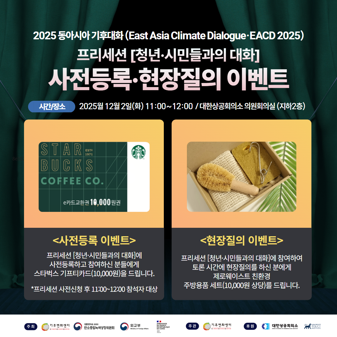 - 주최 : (재)기후변화센터, 외교부, 2050탄소중립녹색성장위원회, 주한프랑스대사관
