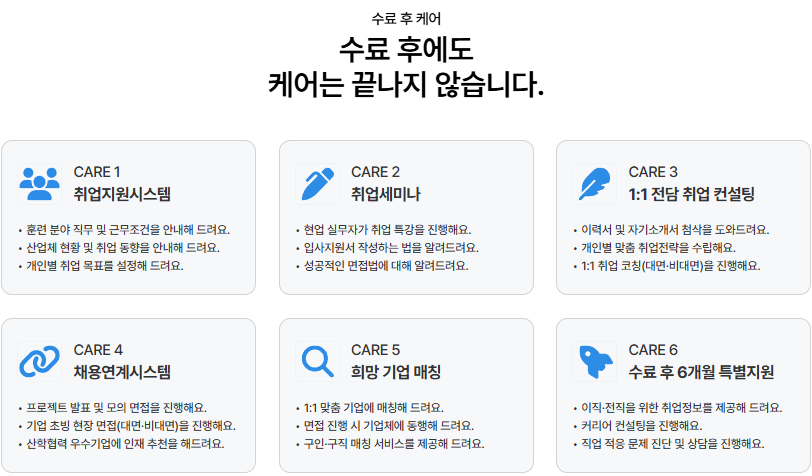 안정적인 커리큘럼과 높은 취업성과를 기대하실 수 있습니다.