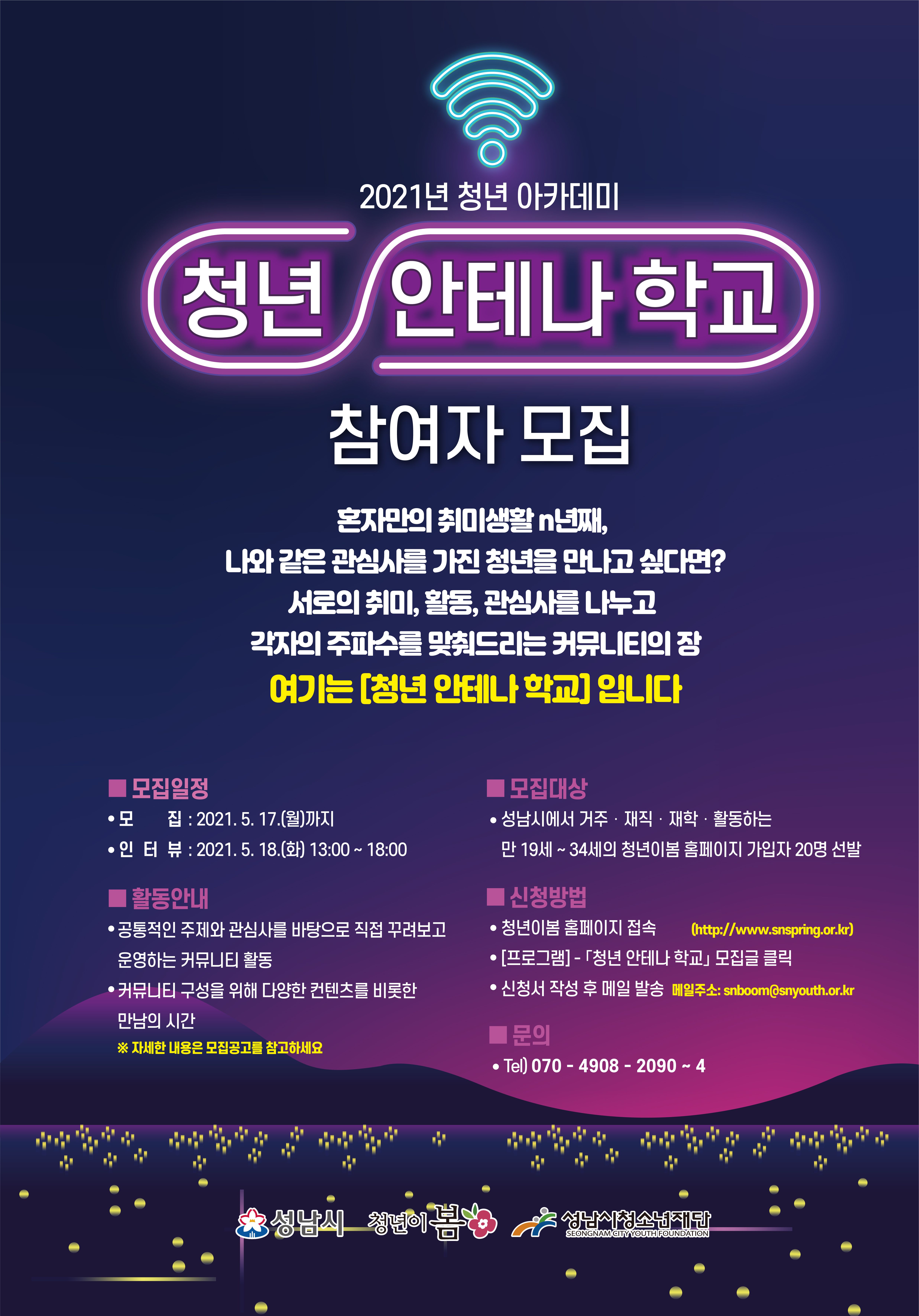 2. 지원대상: 성남에서 거주·재학·재직·활동하는 만19세 ~ 34세의 청년 20명