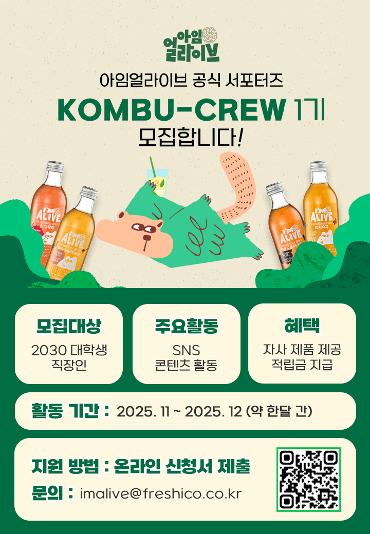 - 평소 아임얼라이브 콤부차를 좋아하거나 관심이 많은 분