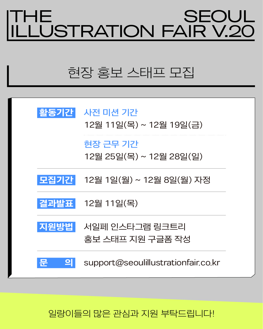 서울일러스트레이션페어V.20 현장 홍보 스태프 모집 (2명)