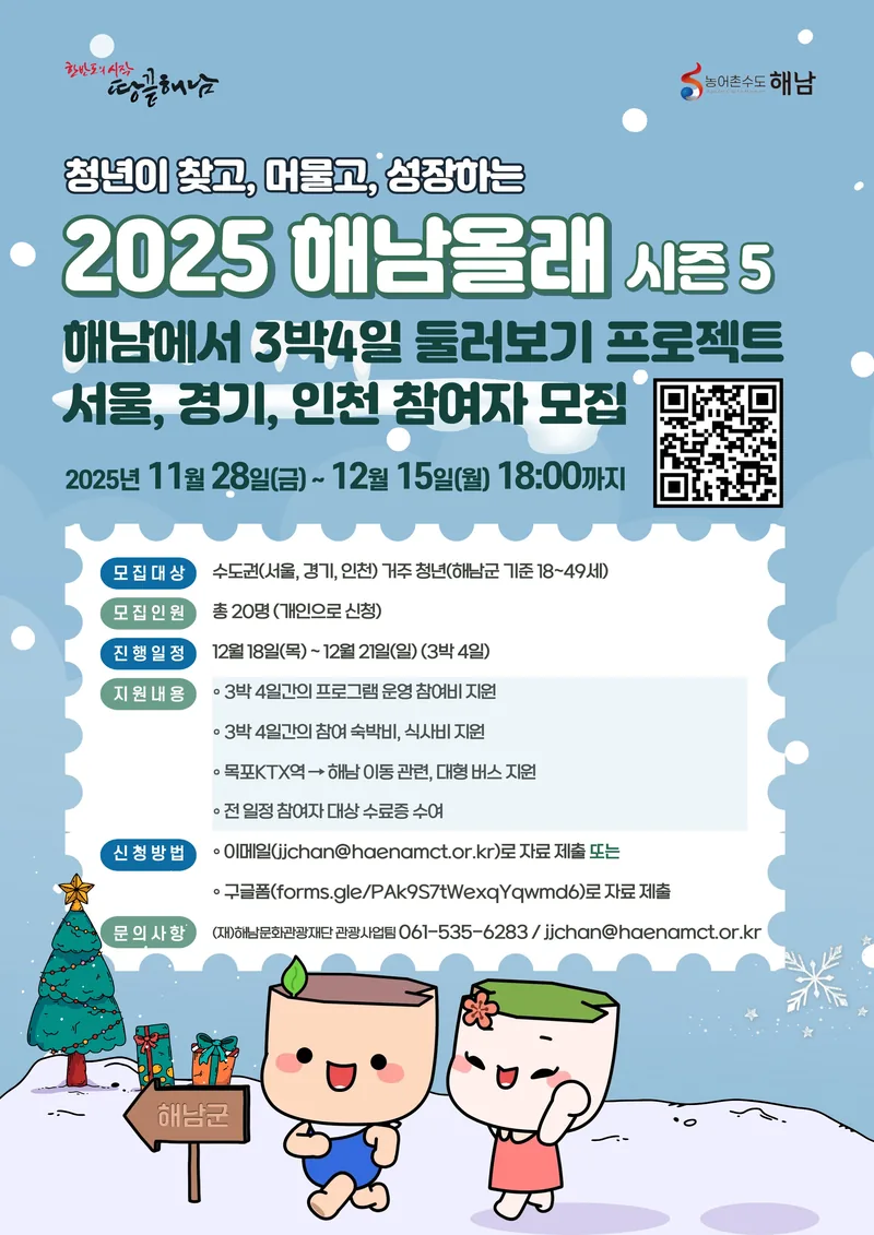 (재)해남문화관광재단 관광사업팀 061-535-6283 / jjchan@haenamct.or.kr