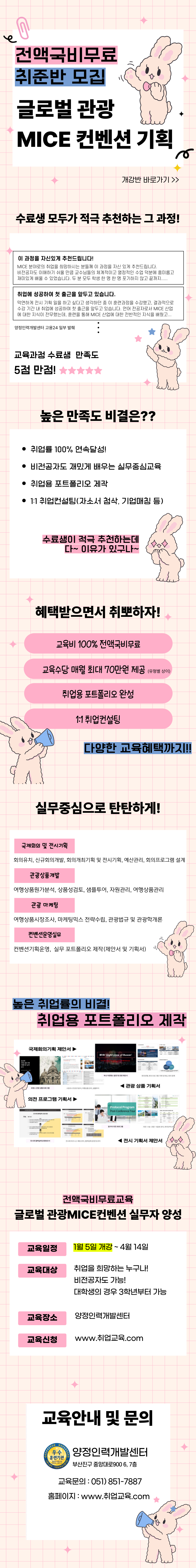 🚨이제는, 관광·MICE컨벤션 전문가로 양정인력개발센터에서 시작하세요!