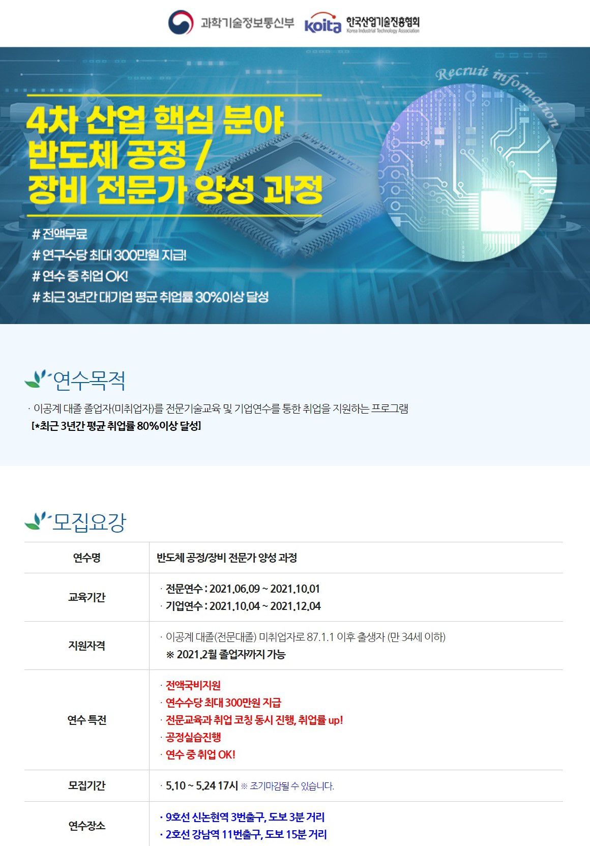 ㆍ이공계 대졸 졸업자(미취업자)를 전문기술교육 및 기업연수를 통한 취업을 지원하는 프로그램