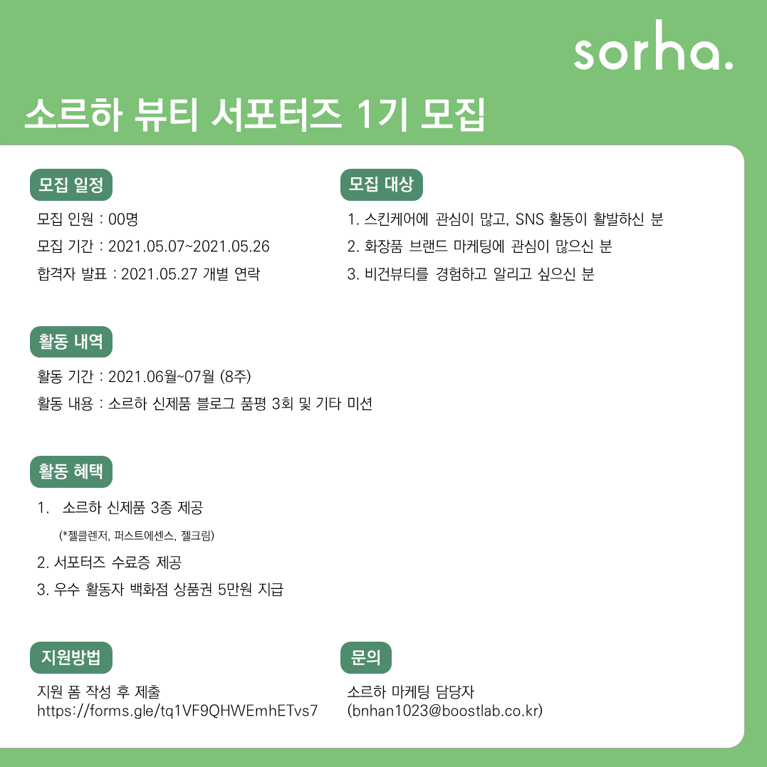 - 서포터즈 활동내용은 소르하 마케팅용도로 활용 될 수 있습니다.