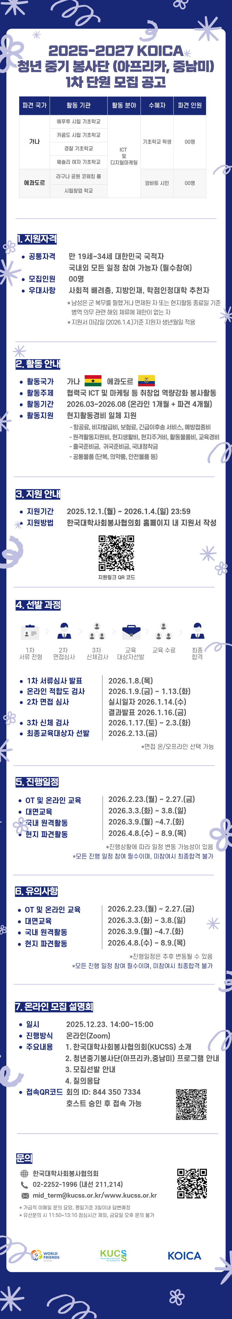 * 모집인원: 00명(가나/에콰도르 각 00명)