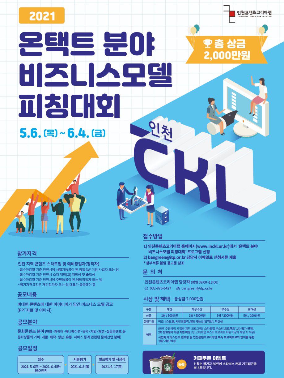 (재)인천테크노파크는 콘텐츠 창작자의 온택트 우수 비즈니스 모델 피칭을 통해 향후 콘텐츠 제작 및 마케팅 지원 등 아이디어의 활용과 스타트업으로의 성장지원을 위하여 『온택트 분야 비즈니스모델 피칭대회』를 다음과 같이 공고하오니 많은 참여 바랍니다.