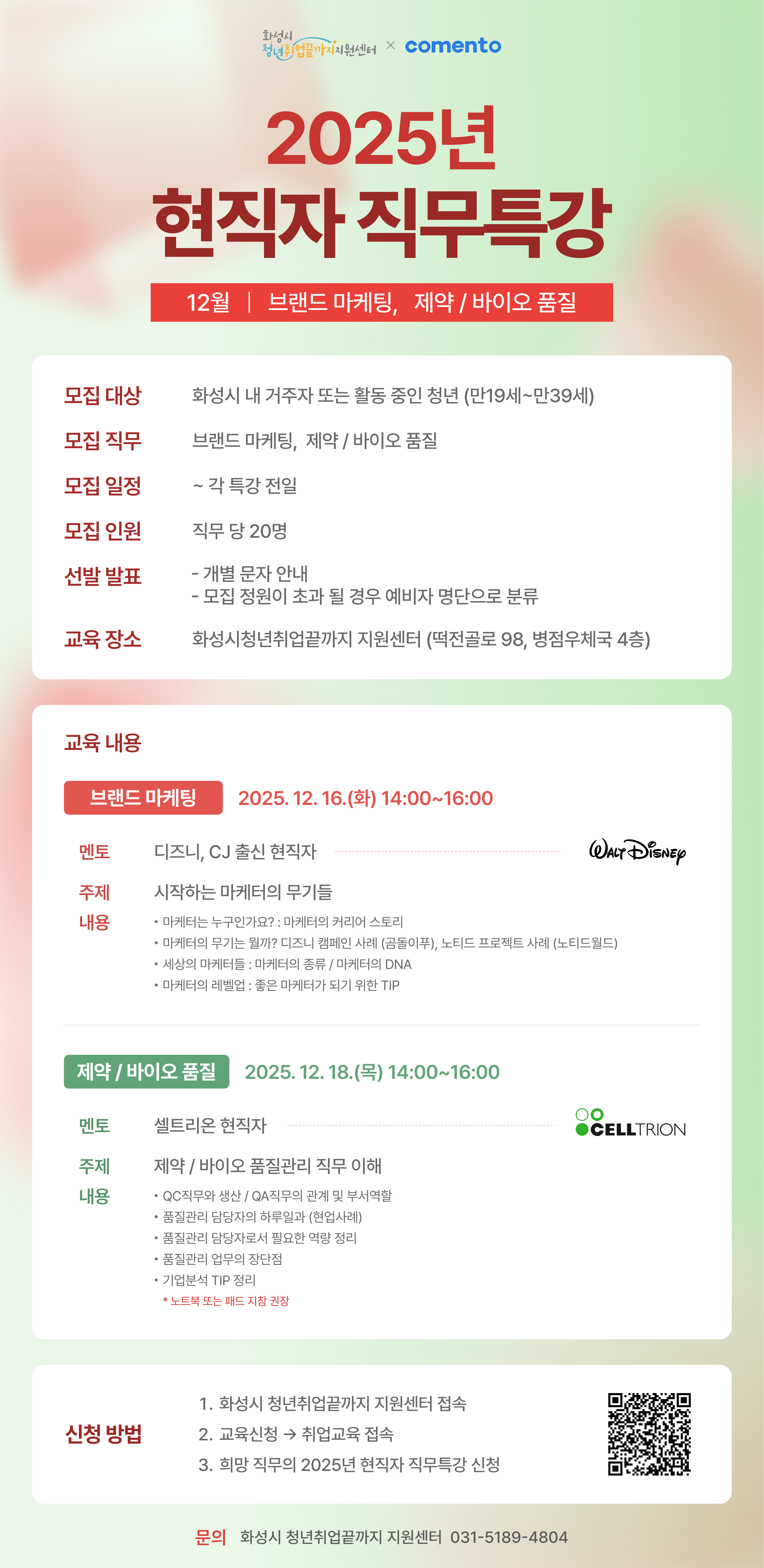 [화성시] 2025년 현직자 직무특강(12월|브랜드마케팅, 제약/바이오 품질)