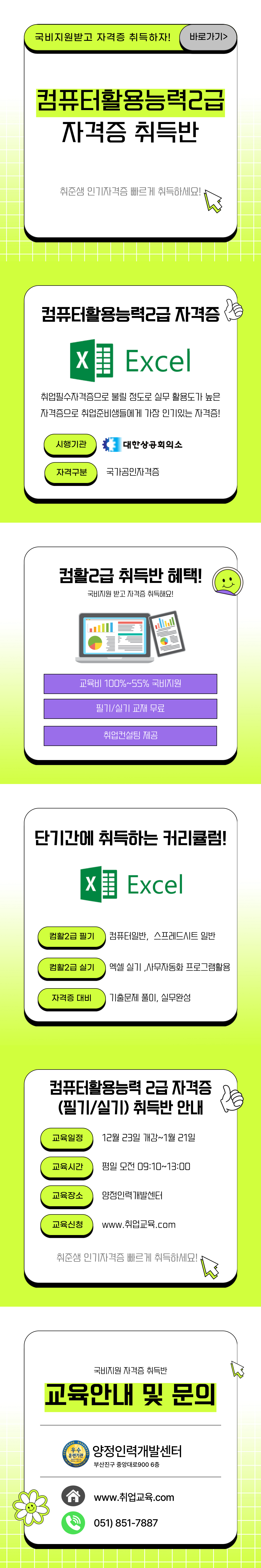 < 컴퓨터활용능력2급 자격증 취득반(필기/실기)>