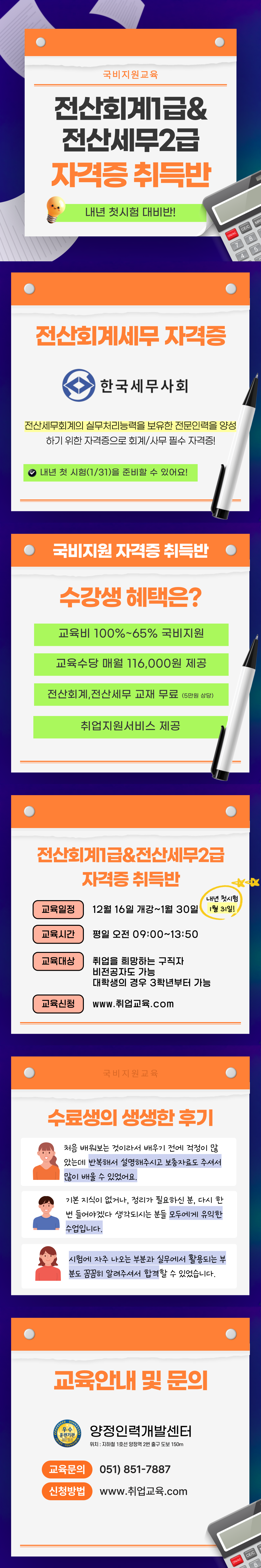📢 회계사무원 양성(전산회계&전산세무 자격증 취득)