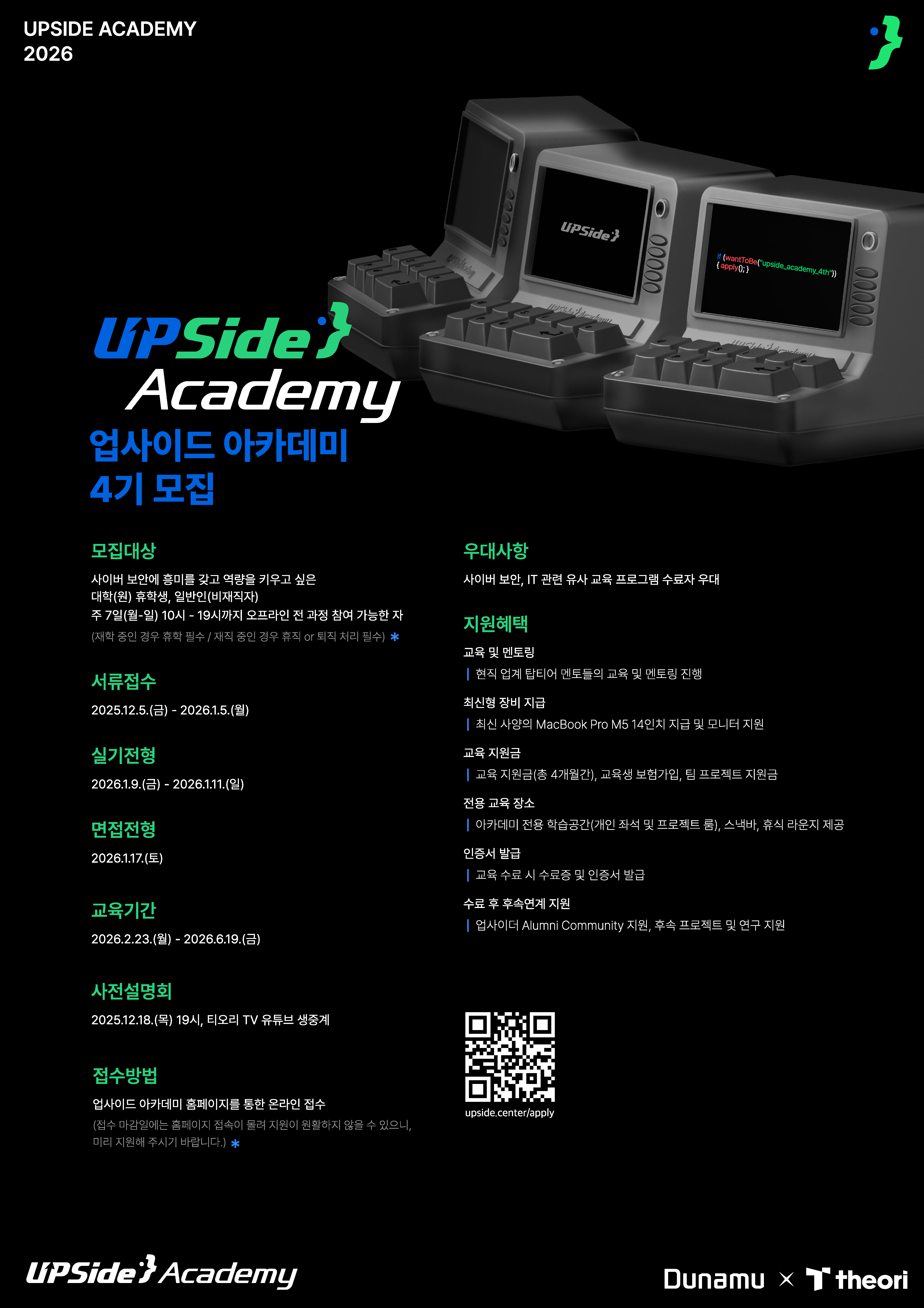 두나무 x 티오리가 함께하는 Web3 사이버보안 전문가 양성과정 UPSide Academy 4기를 모집합니다.