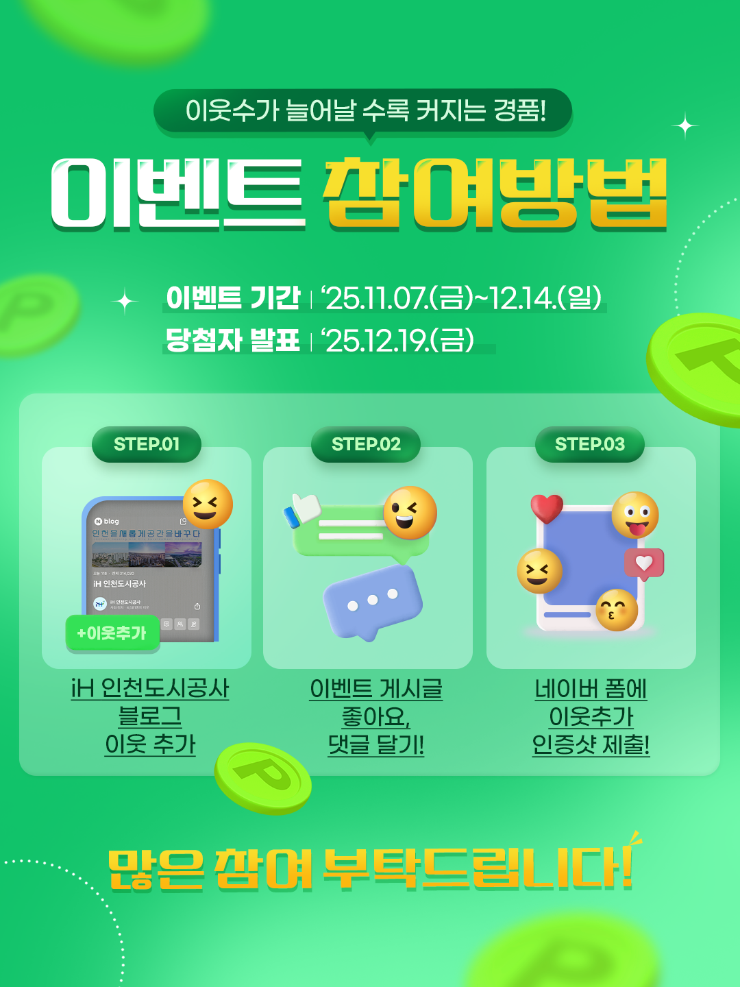 iH 인천도시공사 공식 블로그 이웃추가 버튼을 꾸욱 누르고