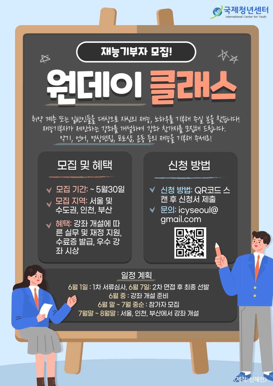 재능기부자 선발 : 1차 합격자 발표 - 6월 1일, 1차 합격자 대면 면접은 6월 7일 오후 7~9시(부산 지원 지원자는 비대면)