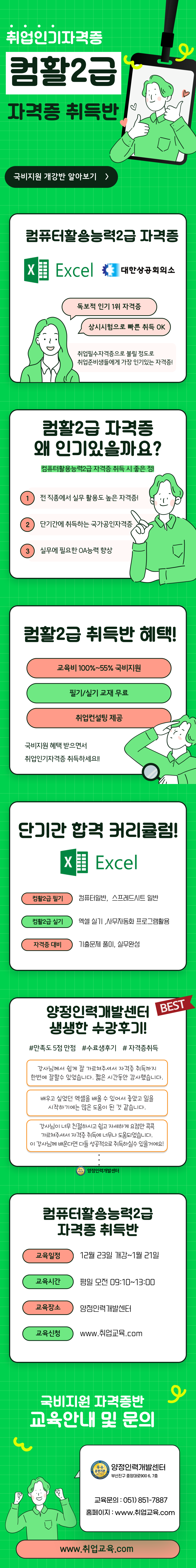 [국비지원/20일 완성] 컴퓨터활용능력2급 자격증 단기취득반(필기/실기)